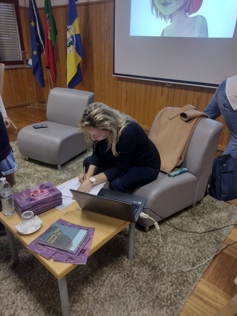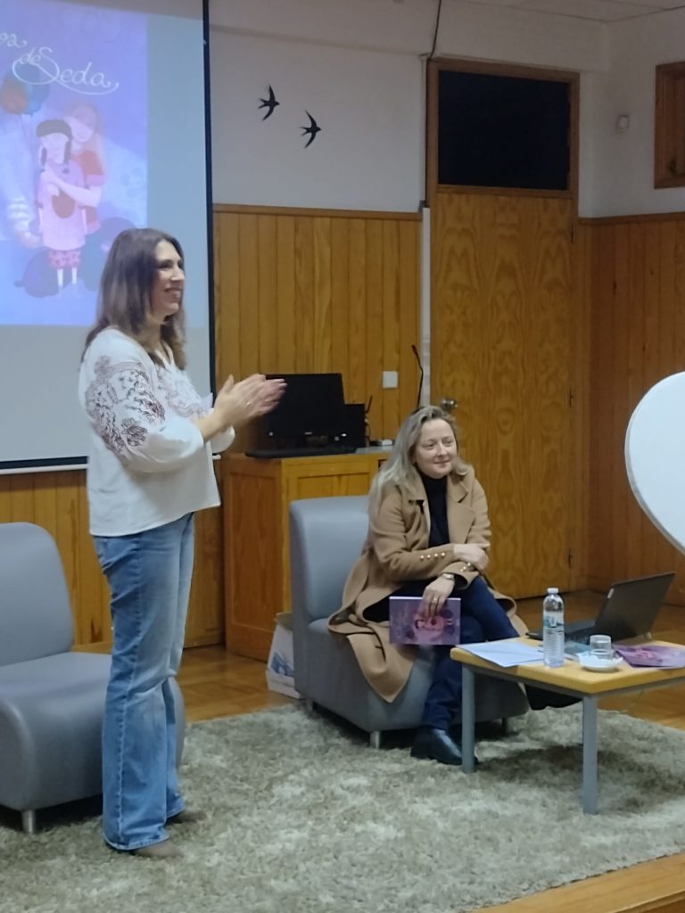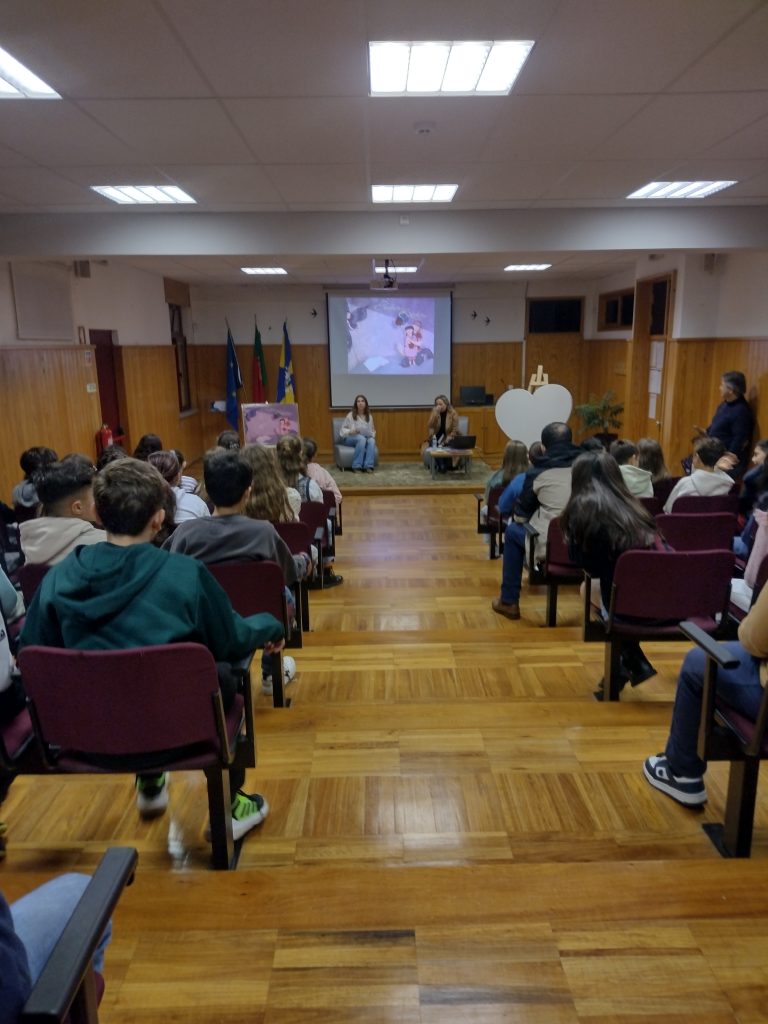 A escritora Bárbara Vale esteve presente, no dia 07.nov’25, durante a manhã, no Auditório 1 do EBS S. Bento, num encontro com alunos. É autora de Sonhos de Seda (2025), um conto infantil que explora a importância do tempo de qualidade em família e que já se tornou um sucesso entre os mais jovens leitores.