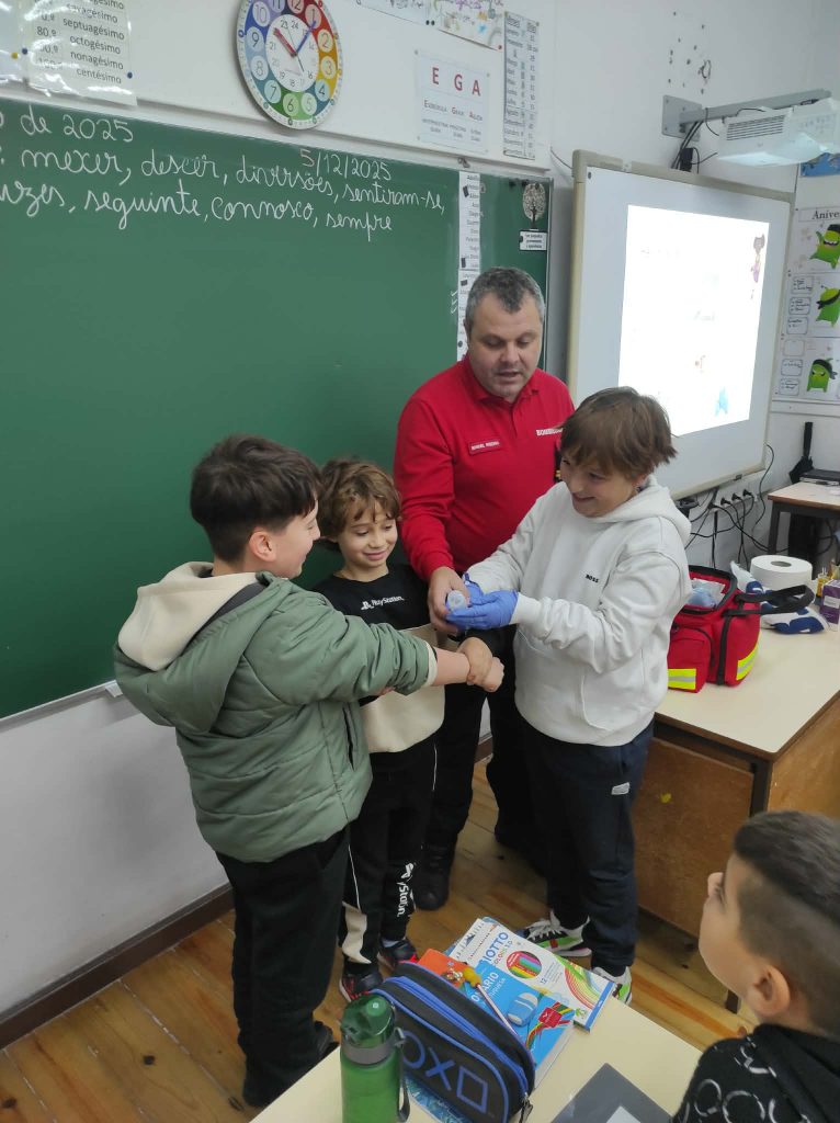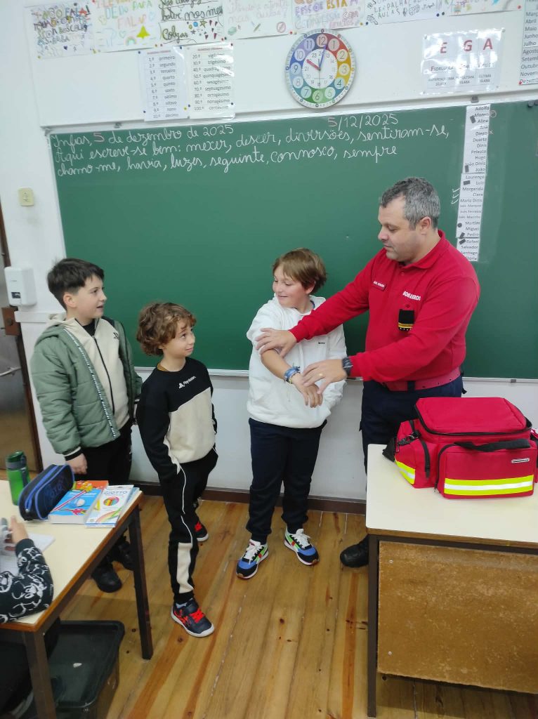 No passado dia 5 de dezembro, a turma do 3.º ano da Escola Básica de Infias, teve uma sessão do PIPA (Projeto de Intervenção e Prevenção de Acidente) com o bombeiro/enfermeiro Miguel Ribeiro, desta vez com a temática “Hemorragias e queimaduras”. Foi uma atividade em que os alunos aprenderam o que fazer nestas situações e onde puderam esclarecer as suas dúvidas, sempre de uma forma muito interativa.