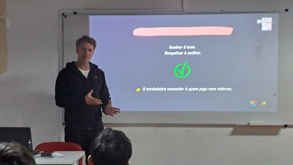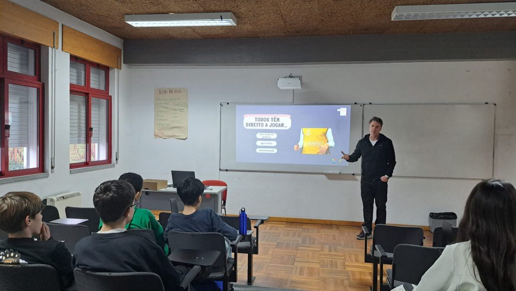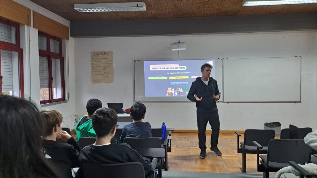 No âmbito da disciplina de Cidadania e Desenvolvimento, o Encarregado de Educação Ricardo Marques dinamizou, no dia 24 de fevereiro, uma sessão dirigida à turma do 7.º F, subordinada ao tema “Direitos Humanos no Desporto”.