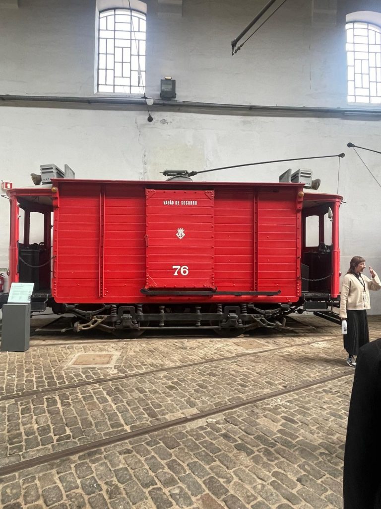 Durante a visita guiada, tivemos a oportunidade de conhecer modelos icónicos como o elétrico 100, o «Fumista», os «Belgas», o protótipo 500 e carros de apoio, como o carro Torre, compreendendo a evolução técnica, estética e funcional destes veículos ao longo do tempo. A explicação permitiu contextualizar o papel fundamental do carro eléctrico no desenvolvimento urbano da cidade, desde os primeiros modelos até às soluções mais inovadoras.