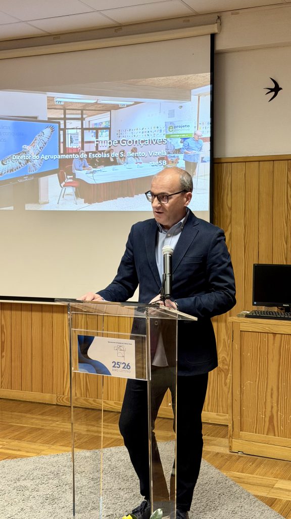 A sessão teve início com a intervenção do Diretor do Agrupamento, Dr. Filipe Gonçalves, que recordou os princípios humanistas que orientam a instituição, bem como a missão e os valores que se refletem no acolhimento dos alunos migrantes