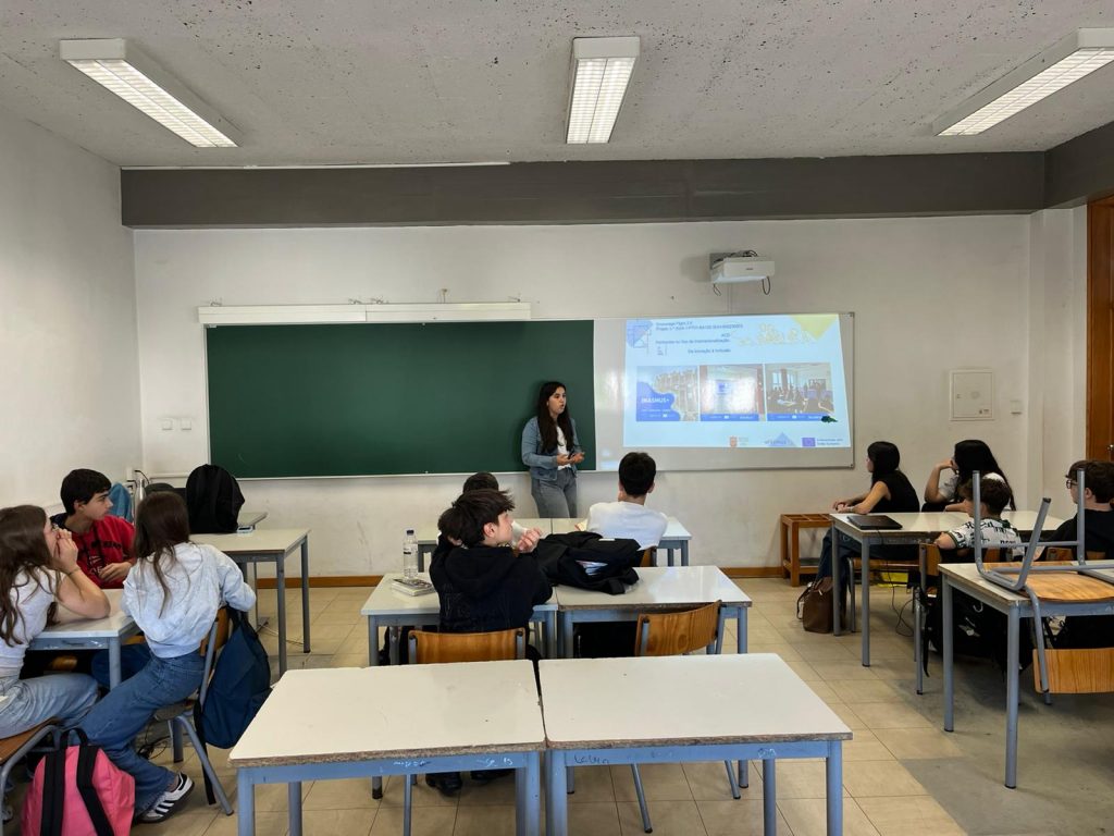 Um grupo de alunos que participou nas mobilidades internacionais no âmbito do programa Erasmus+ realizaram sessões de disseminação junto das várias turmas da escola.